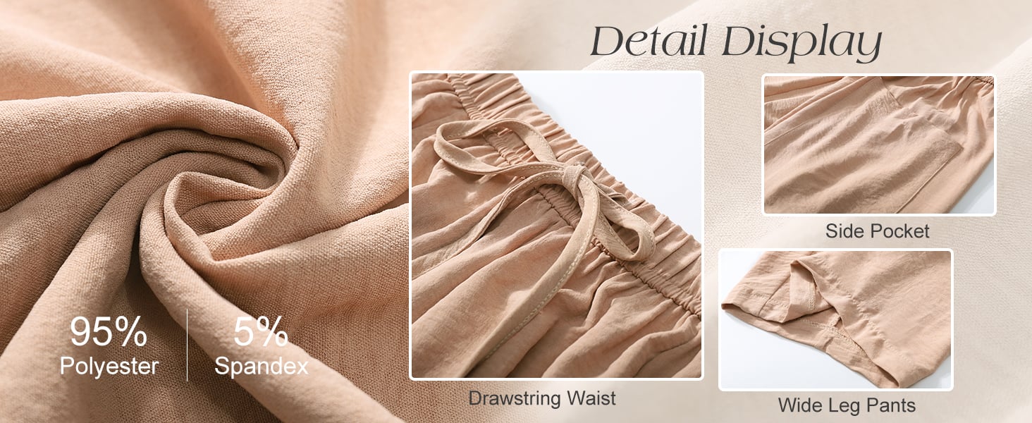Material: These women's wide-leg pants are made of lightweight, breathable, and skin-friendly fabric, drapes well and feels fluid. A popular item especially designed for warm spring, hot summer, and early autumn.