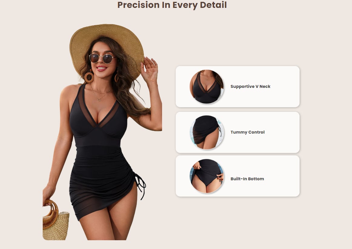 This full coverage slimming swimsuit with a skirt is perfect for beach vacations, pool parties, and water activities. Designed to make you feel confident and stylish whether lounging, swimming, or enjoying a resort getaway.